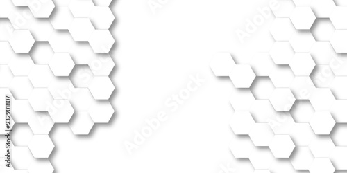 © MdLothfor, Obraz premium Abstract White Hexagonal Background. Luxury White Pattern. Vector Illustration. 3D Futuristic abstract honeycomb mosaic white background. geometric mesh cell texture. modern futuristic wallpaper.