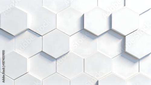 © jiale, Naklejka premium Abstract white hexagonal tile pattern with geometric 3D effect