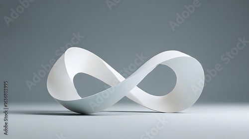 © MDNURALAM, Fototapeta premium Abstract white infinity symbol sculpture on a grey background