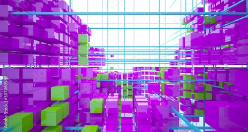 Obraz premium Abstract white interior from array colored cubes with window. 3D illustration and rendering.