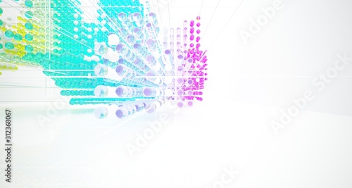 Obraz premium Abstract white interior from array colored gradient glasses spheres with...