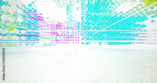 Obraz premium Abstract white interior from array colored gradient glasses spheres with...