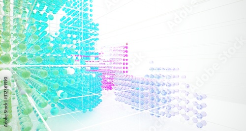 Obraz premium Abstract white interior from array colored gradient glasses spheres with...