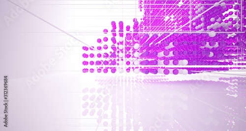 Obraz premium Abstract white interior from array colored gradient glasses spheres with...