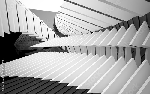 Naklejka premium Abstract white interior of the future, with glossy black wall and floor. 3D...
