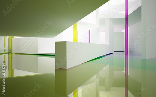 Fototapeta premium Abstract white interior with colored gradient glossy lines and floor. 3D...