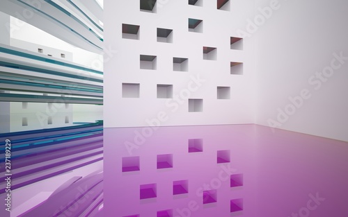 Fototapeta premium Abstract white interior with colored gradient glossy lines and floor. 3D...