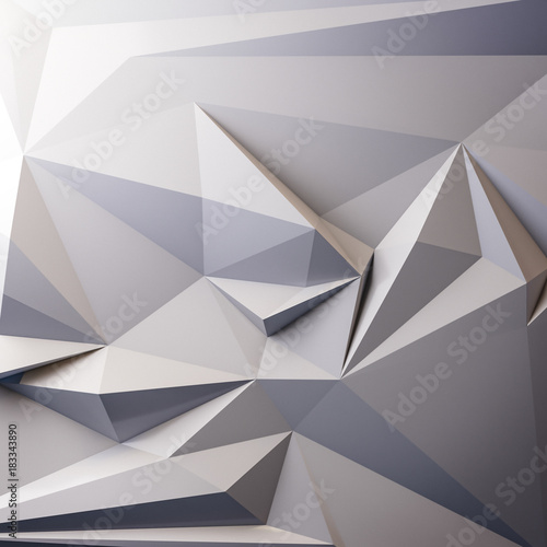 © Chanchai, Obraz premium Abstract white Low Triangular polygon shapes, triangles mosaic, poly design, creative background. 3d rendering