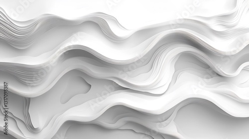 © heinng, Fototapeta premium Abstract White Paper Waves Softly Undulating Light. AI Generated
