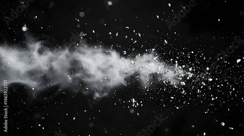 © jam, Obraz premium Abstract White Particles Explosion Against Black Background