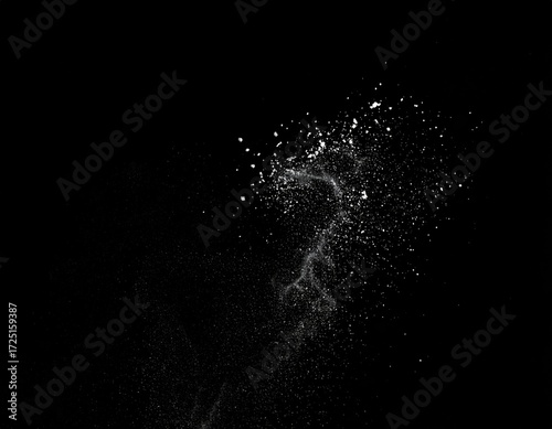 © faiz, Obraz premium Abstract, white particles suspended in mid-air against a black background