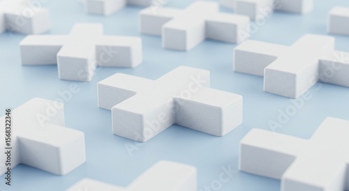 Obraz premium Abstract White Plus Signs Pattern on Blue Background