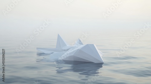 Obraz premium Abstract white polygonal form adrift on tranquil water.