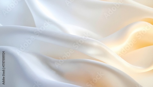 Obraz premium Abstract White Silk or Satin Fabric Background with Smooth Flowing Waves and Soft Golden-White Lighting.