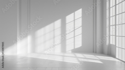 © Sasint, Fototapeta premium Abstract white studio background for product presentation. Empty room with shadows of window.