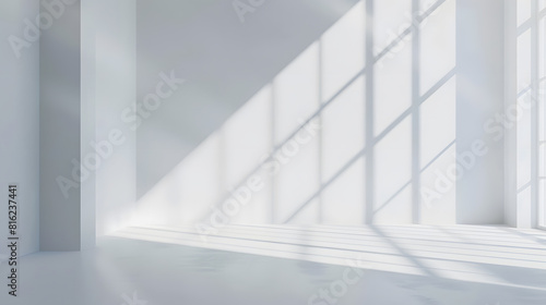 Fototapeta premium Abstract white studio background for product presentation Empty room with shadows of window Display product with blurred backdrop : Generative AI