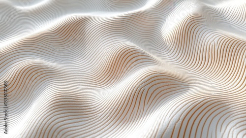 Fototapeta premium Abstract White Surface with Flowing Curves and Subtle Orange Lines, Creating a Wave Effect