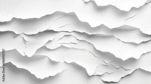 © Yothin, Obraz premium Abstract White Torn Paper Texture Layered, Cracked Grayscale Background