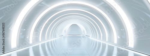 Naklejka premium 光るネオンラインと光のエフェクトを持つ抽象的な白いトンネル。製品プレゼンテーションの背景,Abstract white tunnel with glowing neon lines and light effects. Product Presentation Background,Generative AI
