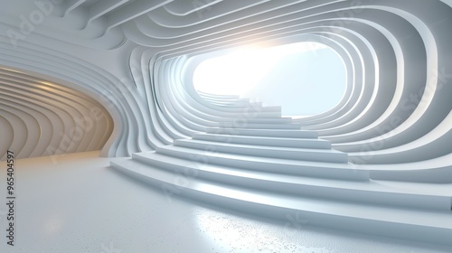 © Ilja, Naklejka premium Abstract White Wave Architecture with Circular Stepped Forms and Oval Skylight, 3D Rendering