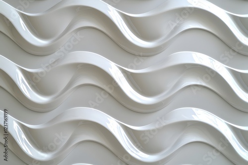 © Guy, Fototapeta premium Abstract White Wave Pattern Modern Architectural 3D Wall Panel Design Texture