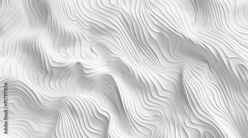 © Arieswanto, Fototapeta premium Abstract White Wavy Pattern with Layered Lines and Curves