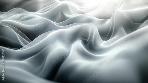 © RizalAziz, Obraz premium Abstract White Wavy Surface With Textured Details and Soft Lighting Background