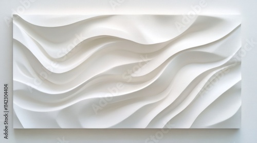 © kucret, Obraz premium Abstract white wavy texture, 3D relief panel.