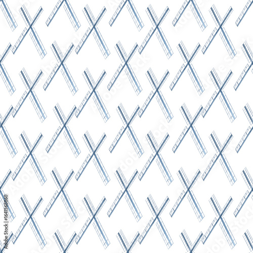Naklejka premium Abstract windmill blades arranged in diagonal rhythm on white background.Seamless watercolor pattern. Airy, architectural design ideal for textiles, packaging, stationery, and eco-themed branding