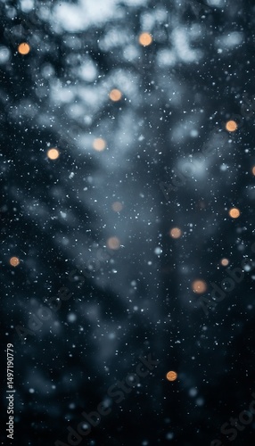 © Ilja, Obraz premium Abstract Winter Background, Beautiful Blue Christmas Lights Bokeh Effect, Festive Holiday Texture