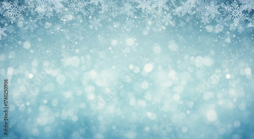 Fototapeta premium Abstract winter background with falling snowflakes and glowing bokeh lights
