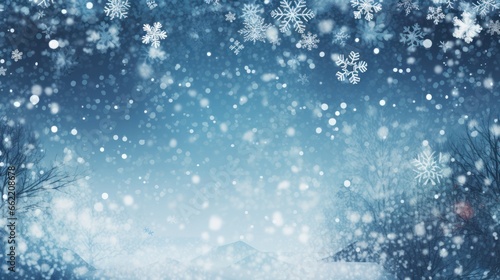 Obraz premium Abstract winter background with snowflakes and bokeh.