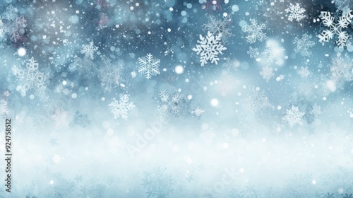 Fototapeta premium Abstract winter background with snowflakes and bokeh.