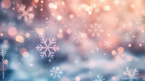 © thenort, Naklejka premium Abstract winter background with snowflakes and bokeh lights.