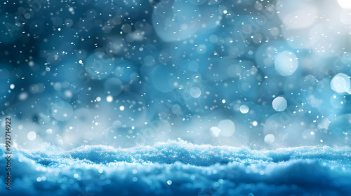 Obraz premium Abstract Winter Background with Sparkling Snow and Blue Bokeh Lights