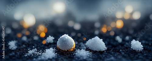 Fototapeta premium Abstract Winter Christmas background with, heavy snowfall, snowflakes in different shapes and forms, snowdrifts. Ice. Winter themed closeups. beautiful snow. 3d Illustration.