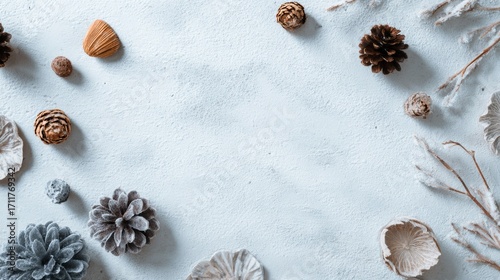 © Julia, Obraz premium abstract winter composition. Frame made of winter. Flat lay, top view, copy space.
