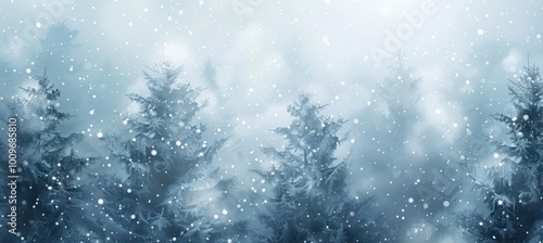 Naklejka premium Abstract Winter Forest Background with Soft Snowflakes in Pale Blue and Grey for Holiday Cards and Posters
