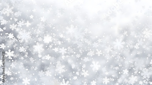 Fototapeta premium Abstract winter snow with white snowflakes confetti and bokeh. Festive minimal background.