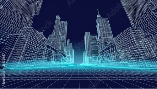 © esta, Obraz premium Abstract wireframe city background