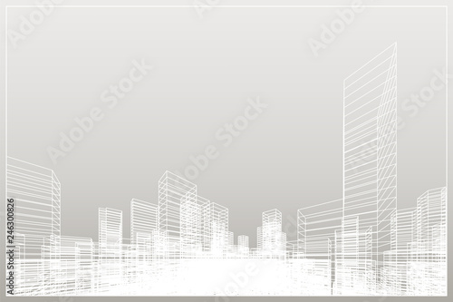 © Lifestyle Graphic, Fototapeta premium Abstract wireframe city background. Perspective 3D render of building wireframe.