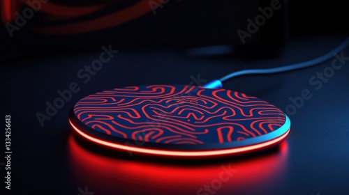 © AizayStock, Obraz premium Abstract Wireless Charger with Colorful LED Light Patterns