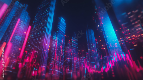 © Teeraphon, Obraz premium Abstract with pastel colorful charts and graphs with statistics to analyze business potential and forecast future development of companies growth. with city skyline and modern building background