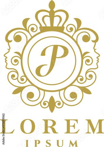 © Andi, Naklejka premium Abstract Womens Frame Letter P Logo Template