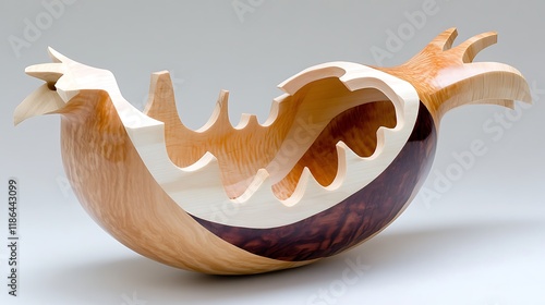 © RAKSIWAH, Naklejka premium Abstract Wooden Bird Sculpture Modern Art Carving Home Decor