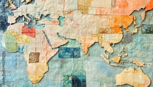 Naklejka premium Abstract world map artwork on textured surface with diverse colors and...