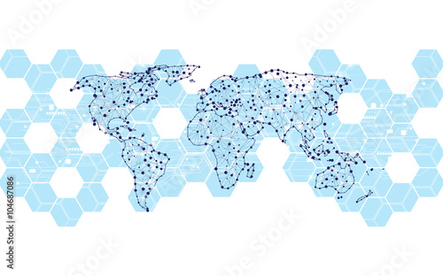 © pixtumz88, Fototapeta premium abstract world map background hexagons pattern innovation tech concept