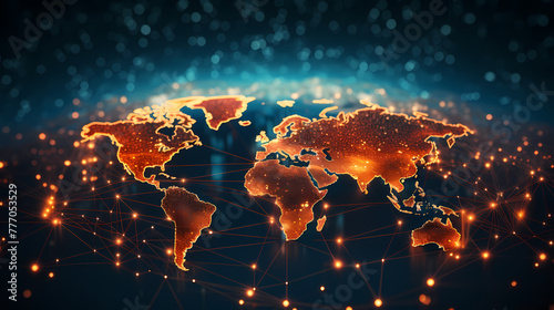Fototapeta premium Abstract world map concept - global business network and connections, international data transfer and cyber technology.