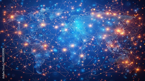 Fototapeta premium Abstract world map, concept of global network and connectivity, international data transfer and cyber technology, worldwide business