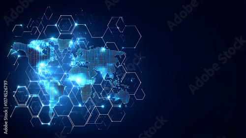© 用脚 开门, Fototapeta premium Abstract world map in hexagonal digital design